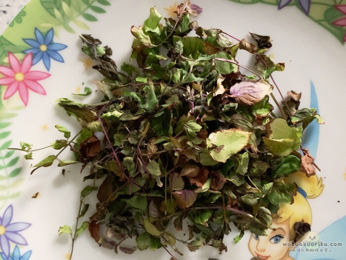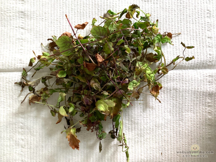乾燥しきっていない葉がまざっていると、カビたり、草っぽいにおいのもとになるので、嫌な人は完全にパリパリになるまで頑張ってください…!